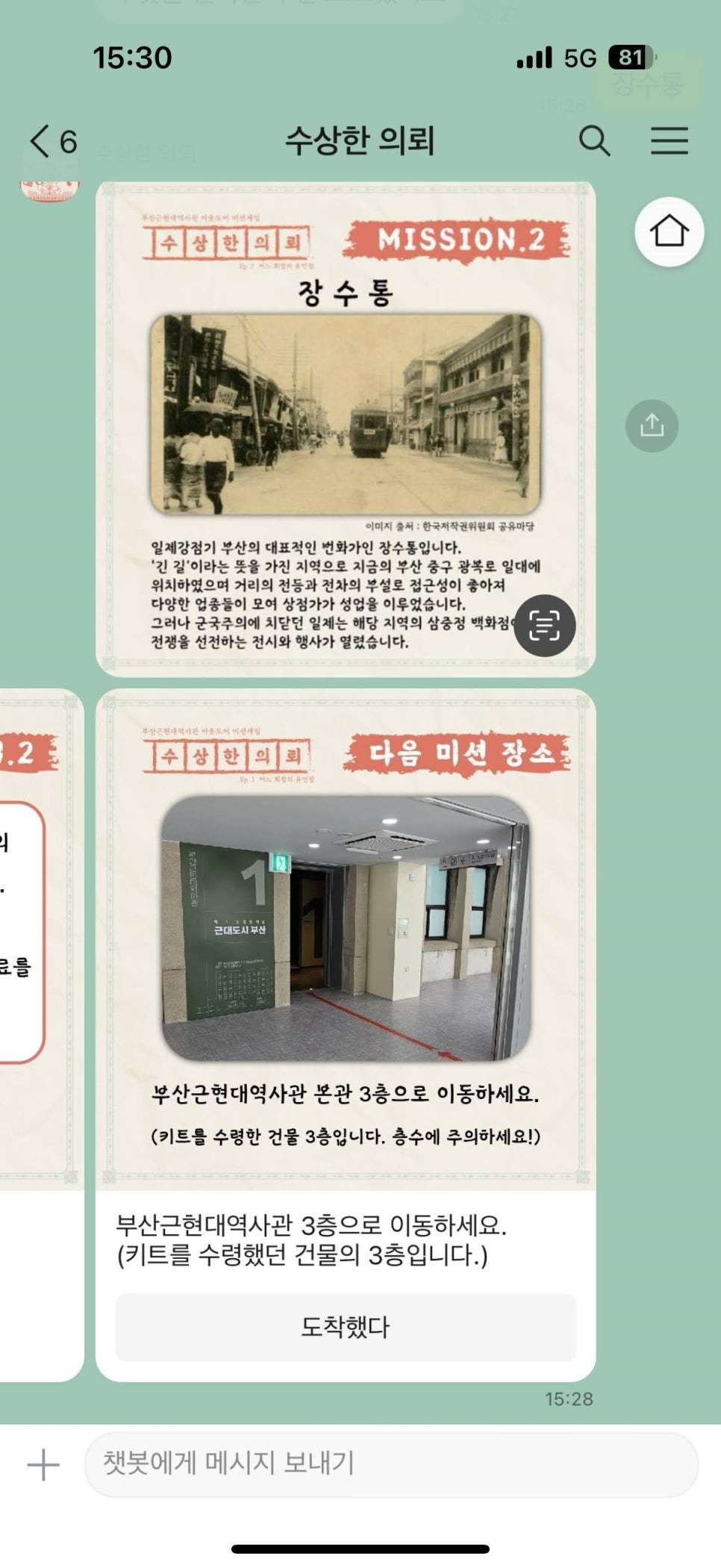 수상한 의뢰 미션 게임을 풀기 위해서는 전시관 내부를 이리저리 다니면서 자세하게 살펴봐야 하니 부산의 역사를 공부하고 체험하기에 정말 좋은 프로그램이라는 생각이 들었습니다.
