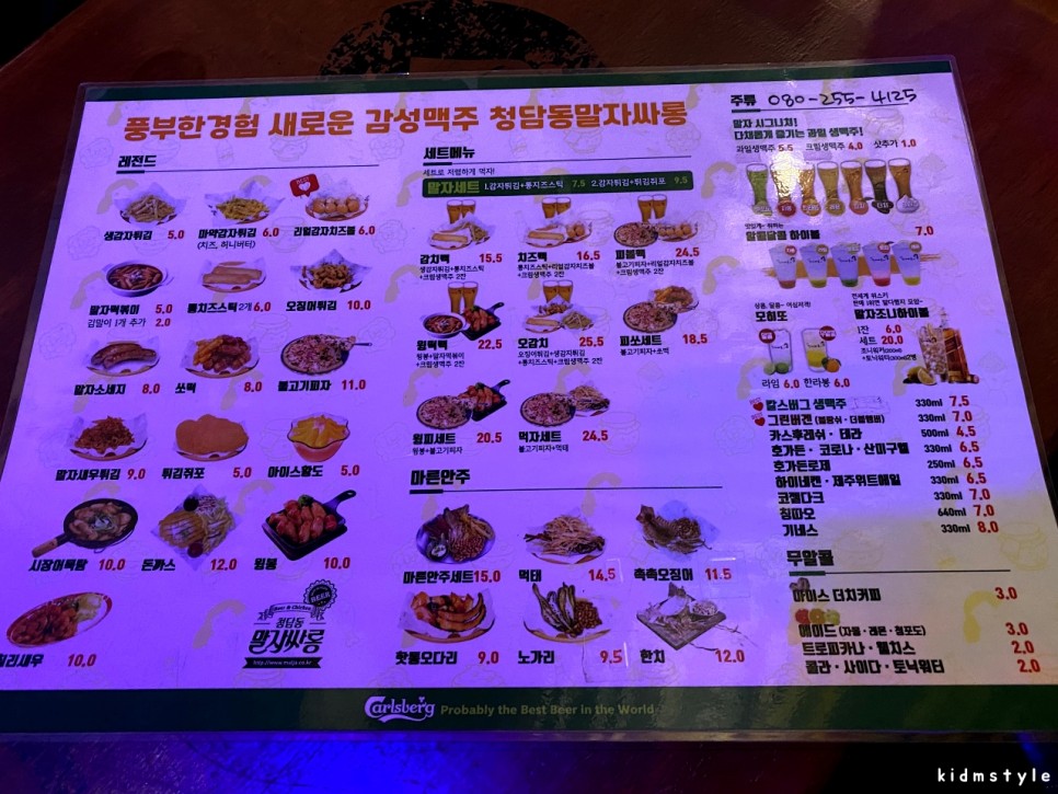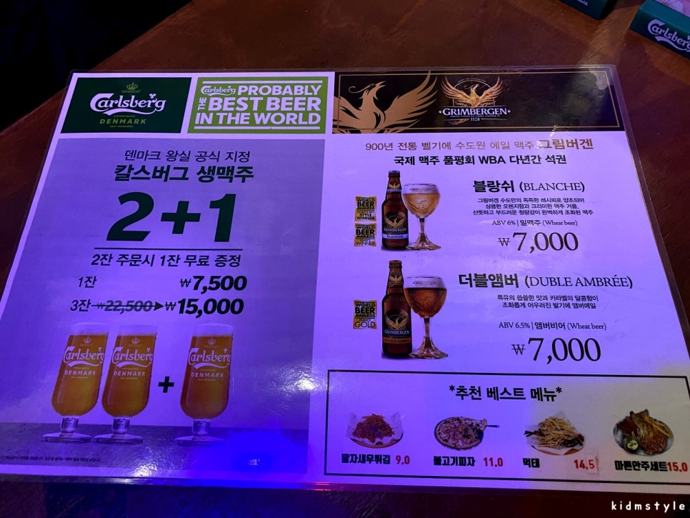 본격적인 메뉴판이다. 가볍게 맥주 한잔하기에 딱 좋은 메뉴, 적당한 가격이다.