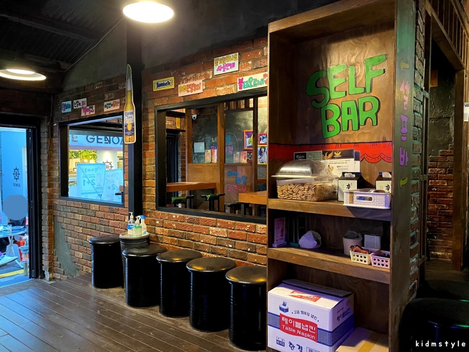 뻥 과자는 입구에 셀프 바애 놓여있고 아기자기한 인테리어에 잘 정돈된 느낌이다.