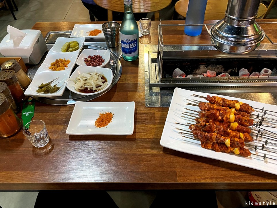 잘 구워진 양꼬치와 함께 소주 한잔해본다.