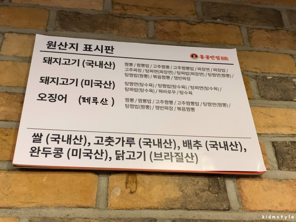 원산지 표시판이다. 백종원 계열 식당은 이 부분은 칭찬을 안 할 수가 없다. 어디 출신인지가 문제가 아니라 상세하게 표기하는 것이 중요하다.