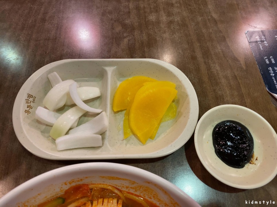 춘장과 양파, 단무지는 처음에 작게 나온다. 셀프 코너에서 가져다 먹으면 된다. 처음에 작게 제공하는 게 합리적이다. 음식물 쓰레기 줄이기도 좋고