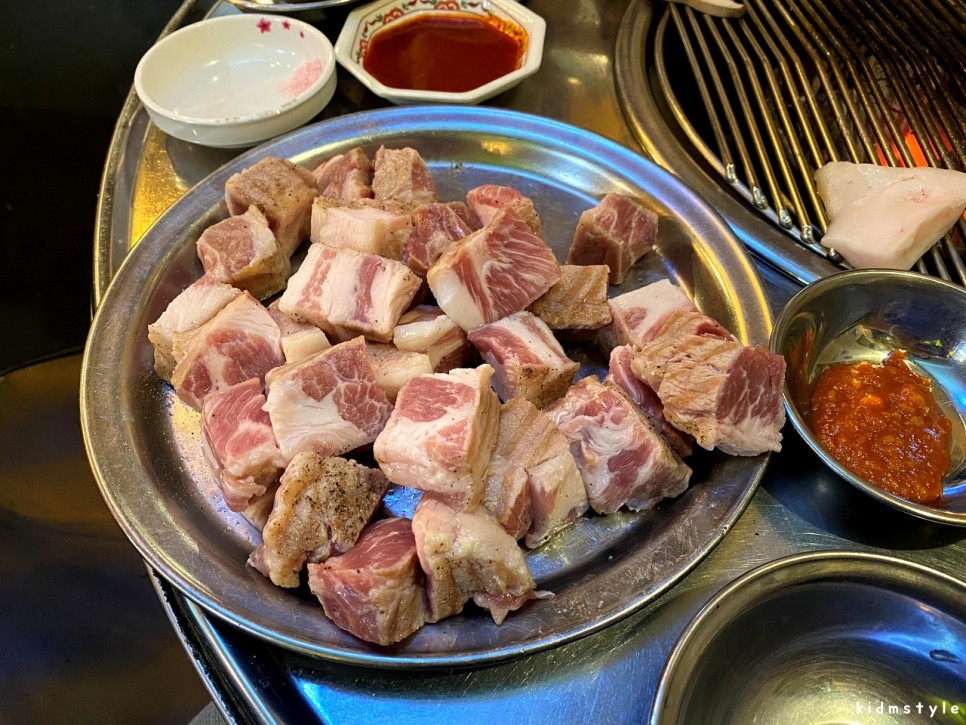 깍둑썰기로 다시 우리 테이블로 돌아온 고기