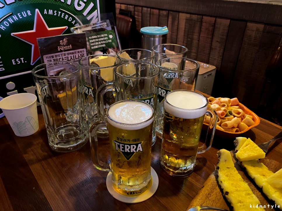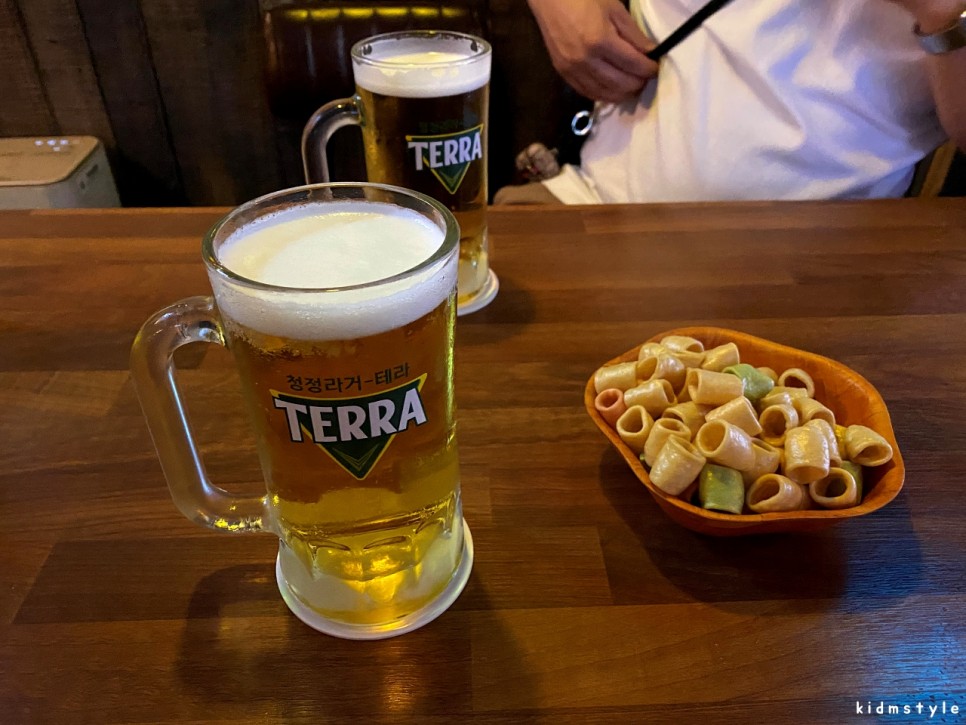 시원한 테라 생맥 한 잔씩 놓고 이런저런 이야기를 나눈다. 이 집의 장점은 시끄러울 것 같아도 상대방과 대화가 잘 되는? 그런 부분이 있다.