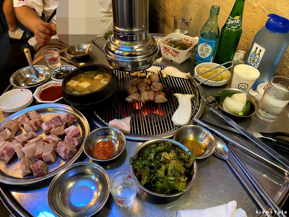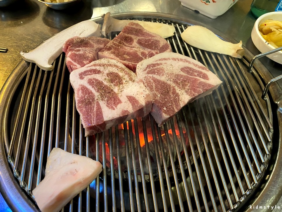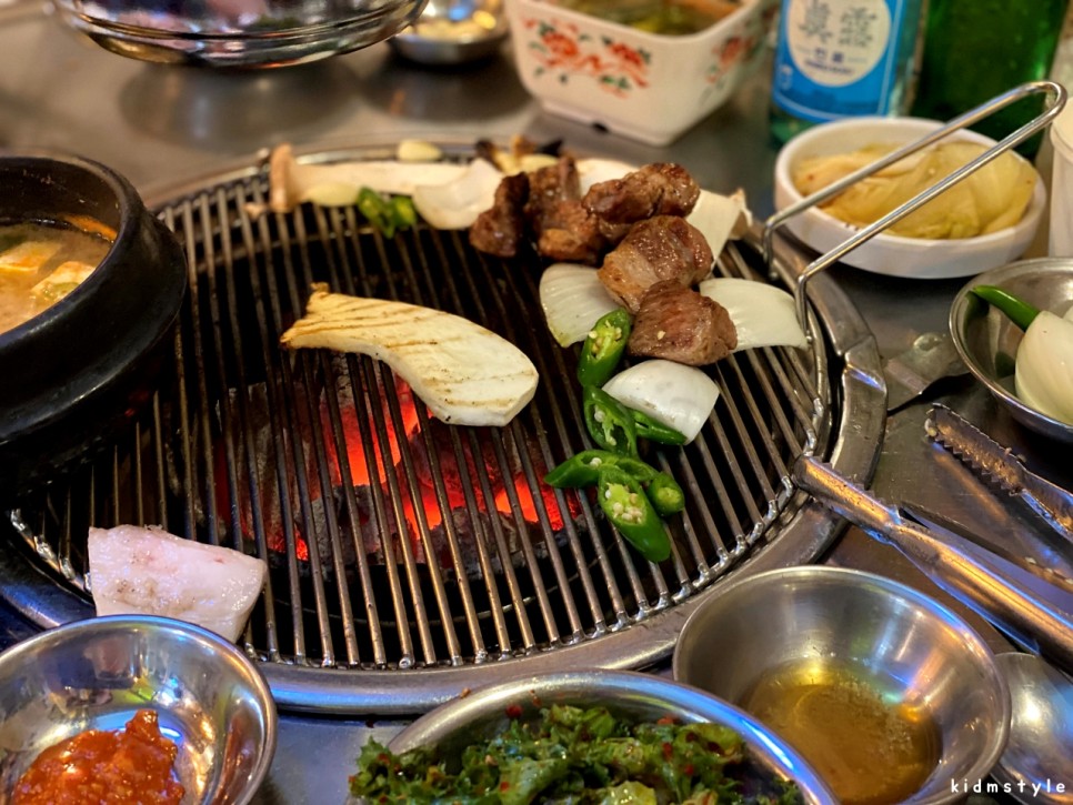 마침 사장님이 계셔서 안부 인사를 나누고 실장님의 반가운 환대로 즐거운 술자리를 시작해본다. 소금구이 3인분을 주문했다. 칼로 썰기 좋게 잠깐 겉면을 구웠다가 가지고 가서 썰어서 다시 제공되는 시스템이다.