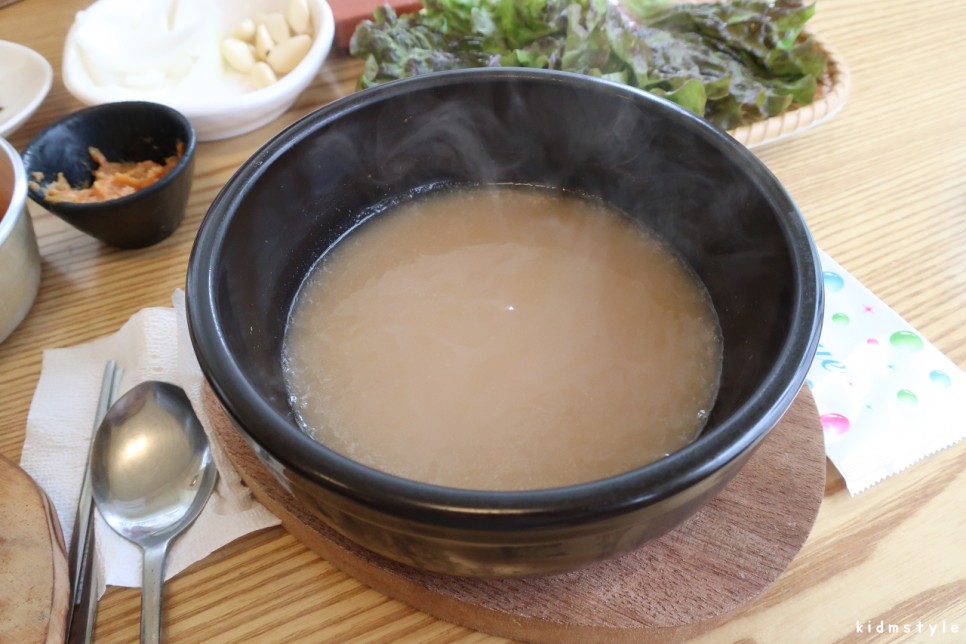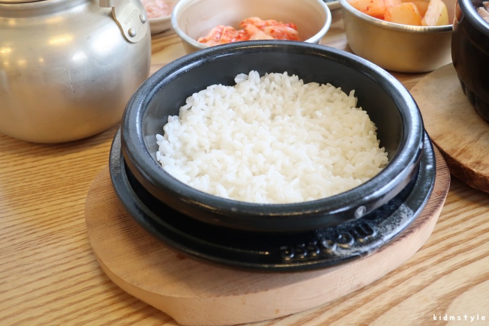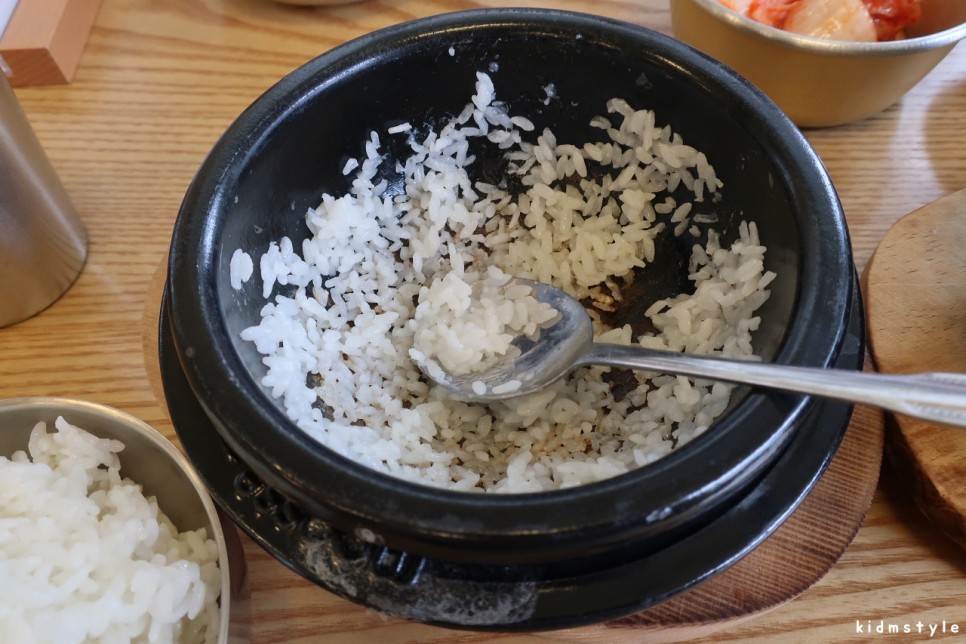 그렇다. 이 집의 모든 메뉴에는 돌솥밥이 제공된다. 8천 원짜리 돼지국밥에도 돌솥밥이 제공된다.