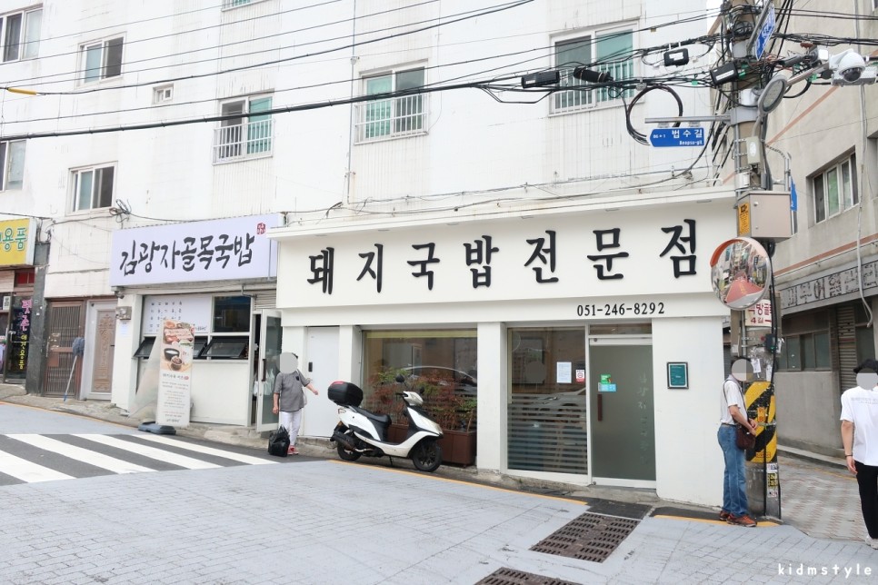 위치는 보수동 구, 김약국 앞이다. 중구민이라면 어딘지 당연히 알 것이다. 책방 골목에서 가깝다. 흰색으로 칠해놓은 모습이 인상적이다. 돼지국밥 전문점이라는 간판이 저 집 뭐지? 하는 궁금증을 가져다준다.