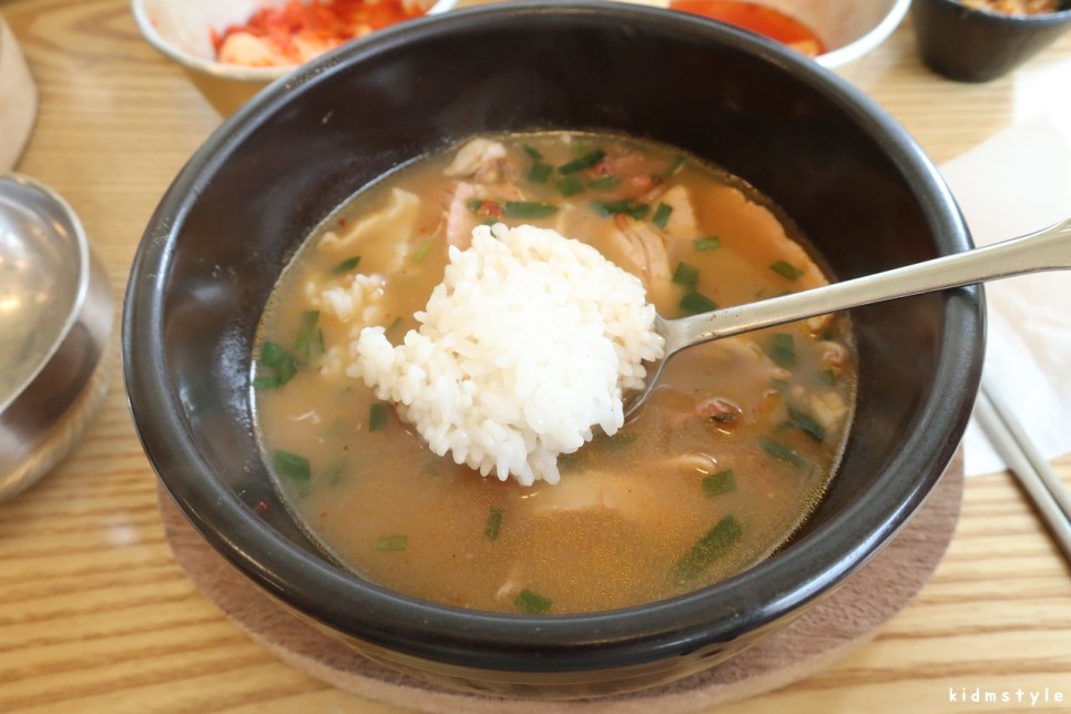 국물에 푹 적신 밥 한 숟가락 먹어보자. 맛이 있다.