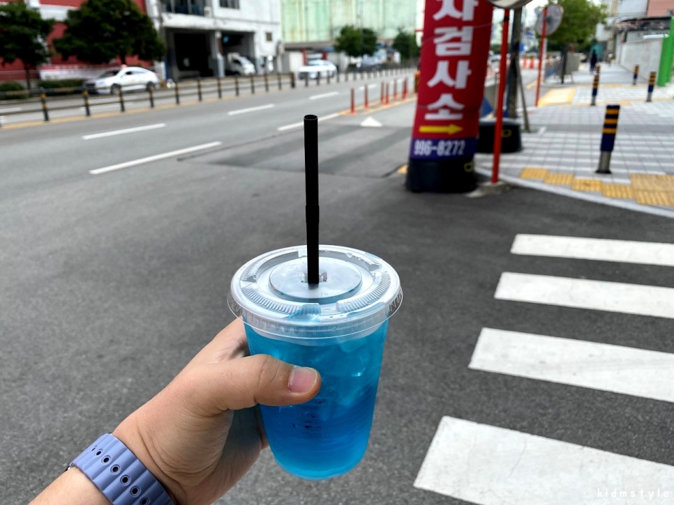 소화시킬 겸 함께한 이와 송도까지 걸어본다. cu 편의점에서 블루 레모네이드 한잔 사들고.