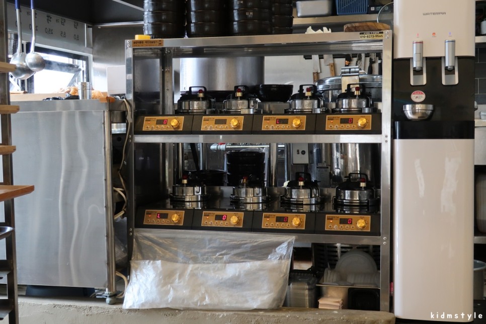 계산을 하고 이것저것 여쭤보며 대화를 했다. 바쁜 시간에도 돌솥밥을 쳐낼 수 있는 이유가 바로 저 압력솥 덕분이다. 주방 역시 아주 깔끔하고 잘 관리되고 있는 모습이라 안도감이 든다. 사장님과 직원분들 모두 너무 친절하다.