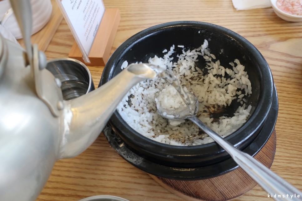 미리 불려놓은 밥을 긁어서 숭늉으로 마시며 마무리한다.