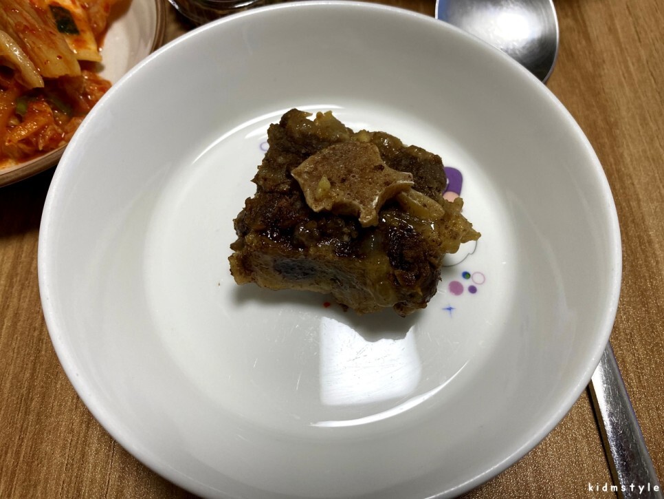 상당히 큰 덩어리이다. 발라먹는데 집중한다. 중자를 주문해서 둘이서 먹었다. 갈비탕도 있었지만 조금 찬밥 신세였고 오로지 소꼬리찜과 오메기 맑은술에 집중을 했던 것 같다. 너무 맛있어서 금방 다 먹어버렸다. 다음에는 대자를 주문해서 먹기로 약속했다. 아, 제주 오메기 맑은술은 2병 주문하고.