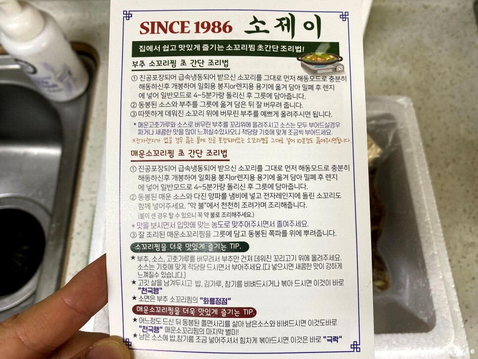 소제이라는 서면 롯데 본점 부근에 상당히 인기가 많은 소꼬리찜집이 있다. 그 집에서 집에서 먹기 좋게 밀키트를 출시했다. 코로나19 시대에 아주 바람직한 흐름이다. 집에서 주문해서 마음 편하게 에어컨 빵빵하게 틀어놓고 힐링하면서 먹으면 되는 것이다.