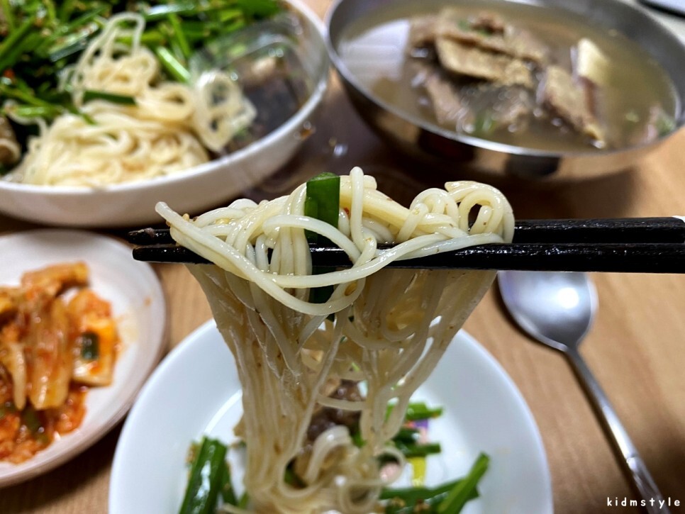 부추도 올려서 먹어본다. 완전 꿀맛이다.