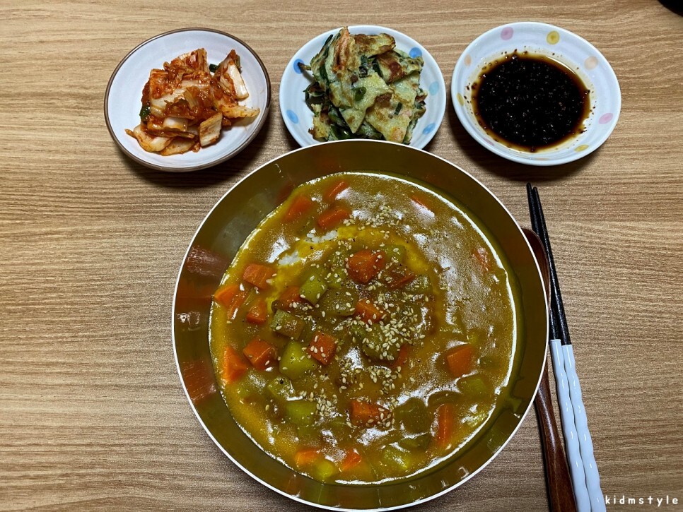 김치도 썰었는데 맛있는 저녁을 먹어보자. 메뉴를 고민하다가 카레로 정했다. 카레는 오뚜기 카레 매운맛이다. 1kg 짜리 대용량을 구입해놓으니 상당히 편하다.