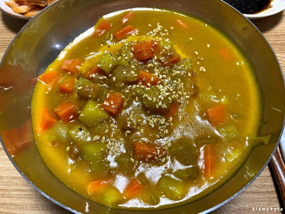 카레 잘 만들어졌다. 깨, 후추 팍팍 뿌려준다.