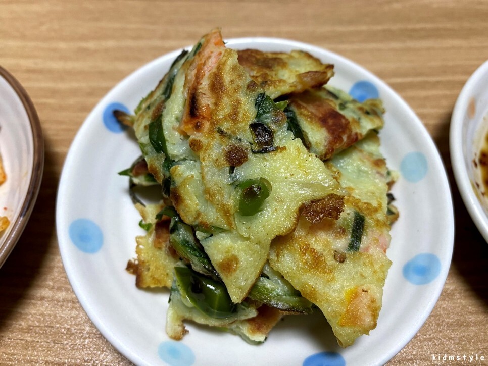 잘 구운 부추전도 간장 소스에 찍어 먹으니 꿀맛이다.