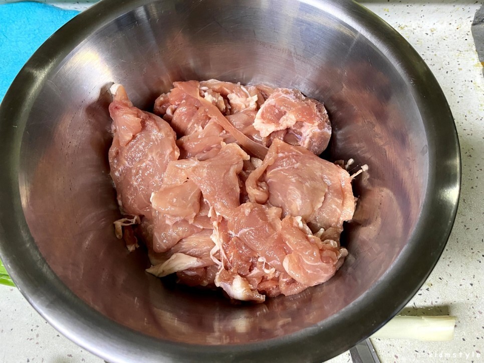 큰 스텐 볼로 교체해서 시작해보자. 고기는 신선해 보인다.