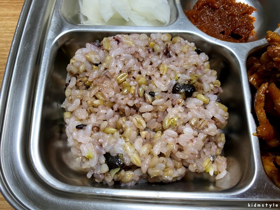 냉동 소분해놓았다가 전자레인지에 3분 돌려서 해동한 잡곡밥