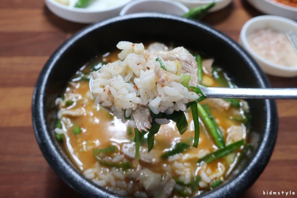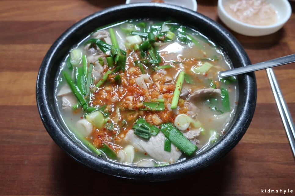 한 그릇 잘 먹었다. 아주 예전에 먹었던 맛과 약간 다른 느낌이랄까? 맛이 상당히 깔끔하다. 시장 국밥을 생각하고 먹는다면 상당히 이질감을 느낄 것이다. 돼지 잡내도 거의 없고 상당히 깔끔하다. 돼지국밥을 처음 접하는 사람도 무리 없이 즐겁게 맛볼 수 있는 맛이다. 맛있게 잘 먹었다.