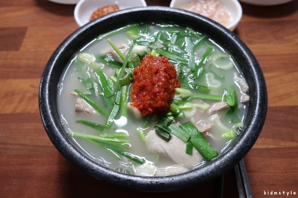 국물을 먹어본다. 깔끔하다. 돼지 잡내 안 난다. 아주 깔끔 심플하다.