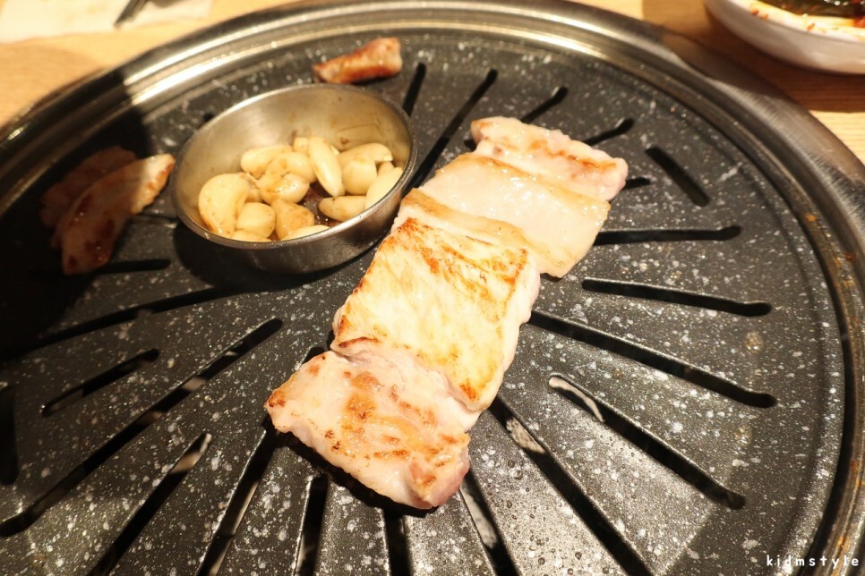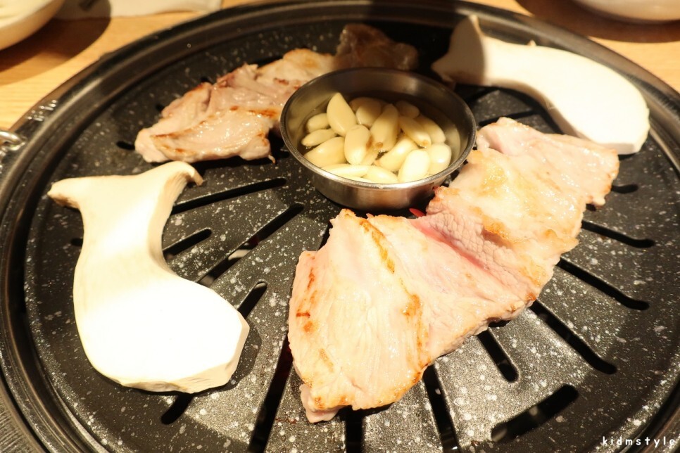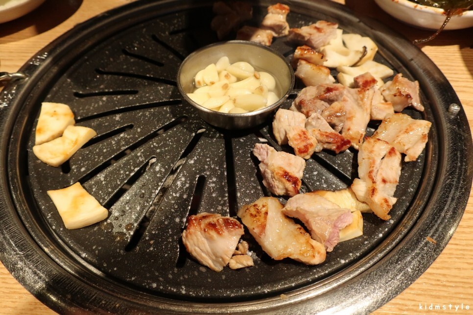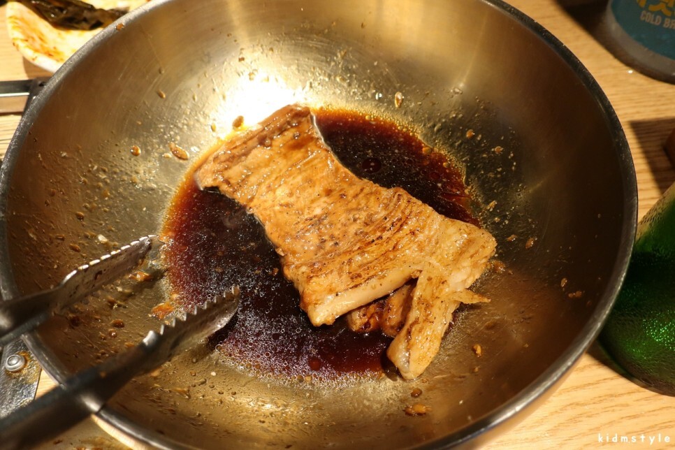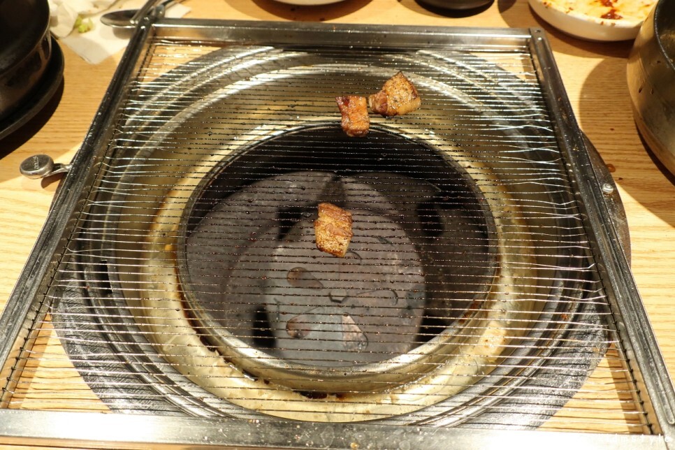 피아노줄 불판으로 불판이 바뀐다. 이 불판을 굽기 어려워하는 사람이 많은데 어려울 것 없다. 잘 뒤집고 잘 구우면 된다.