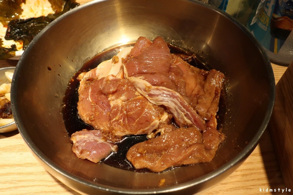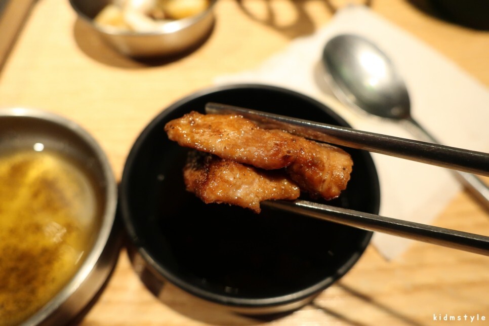 한 점 집어서 맛보니 맛이 괜찮다. 생갈비 본연의 맛이 느껴지면서 맛있다.