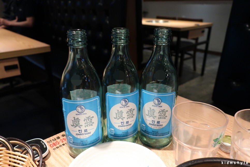 두 점 집어서 간장에 찍어서 한입 후, 소주 한잔