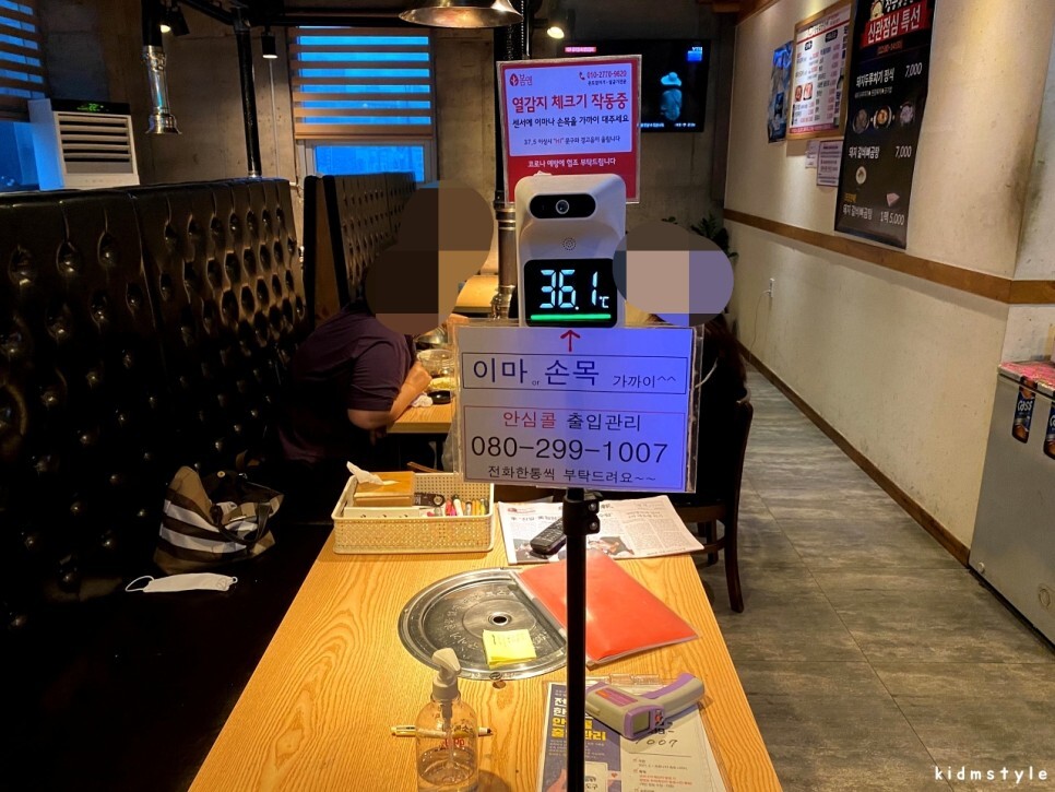 내 체온 오늘은 좀 높게 나왔네. 체온 재고 안심콜 때리고 자리 잡자.