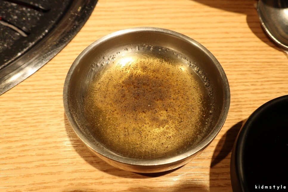 참기름에 소금과 후추를 뿌린다. 고기 먹을 때 빠져서는 안되는 소스이다.