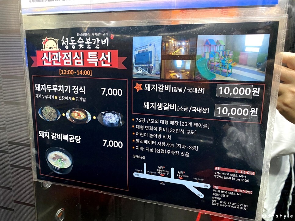 비 오는 주말 저녁, 버스를 타고 청학성당 정류장에 하차, 오늘 가볼 곳을 한번 찍어본다. 청동숯불갈비이다. 사실 이 집은 보는 방향에서 오른쪽에 1층짜리 작은 매장을 운영하던 곳이다. 나 역시 그 시절에 자주 갔다. 지금도 원래 자리에는 영업을 하긴 하는데 저녁 전에 문을 닫는다고 들었다. 지금 위치에는 3번째 방문이다. 영도까지 버스를 타고 들어와서 먹을 가치가 있는지 한번 살펴보자.
