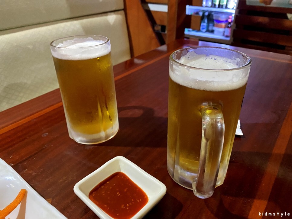 이어서 2차는 단골 초량 드림하버로 향한다. 시원한 생맥주 500 두잔과 먹태를 주문한다.