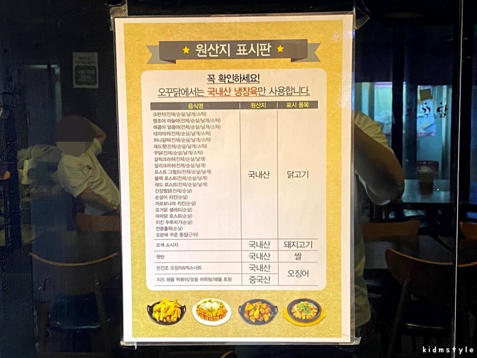 자리를 잡고 원산지 표시판을 찍어보았다. 프랜차이즈답게 원산지 표시가 잘 되어있는 모습이다.