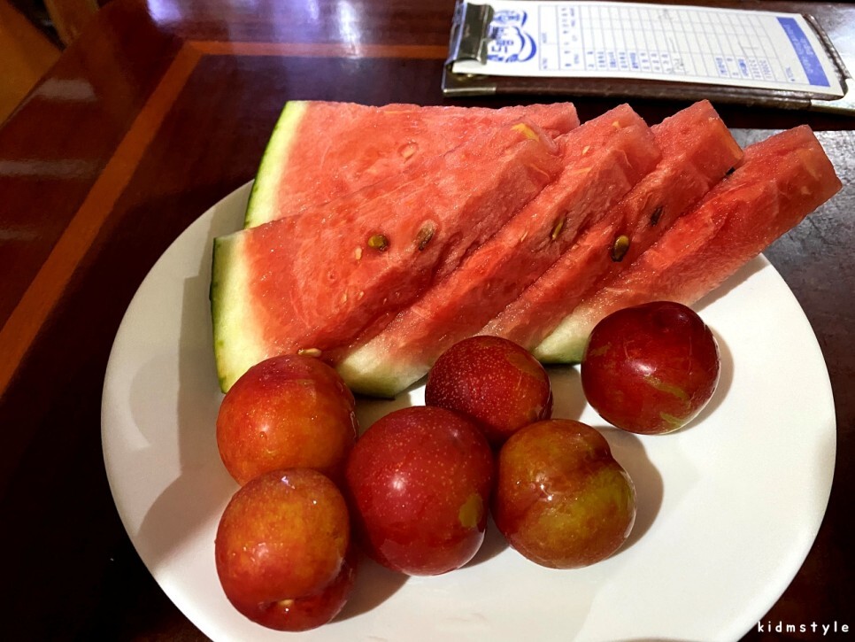 단골이라고 서비스로 과일을 챙겨주신다. 아주 달달한 수박과 자두이다. 과일 안주를 따로 주문할 필요가 없다.