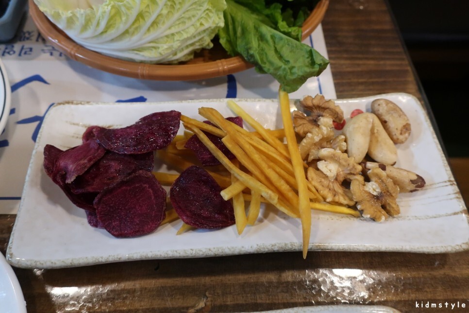 자색 고구마칩, 고구마튀김, 호두 등 입가심용 안주도 나온다.