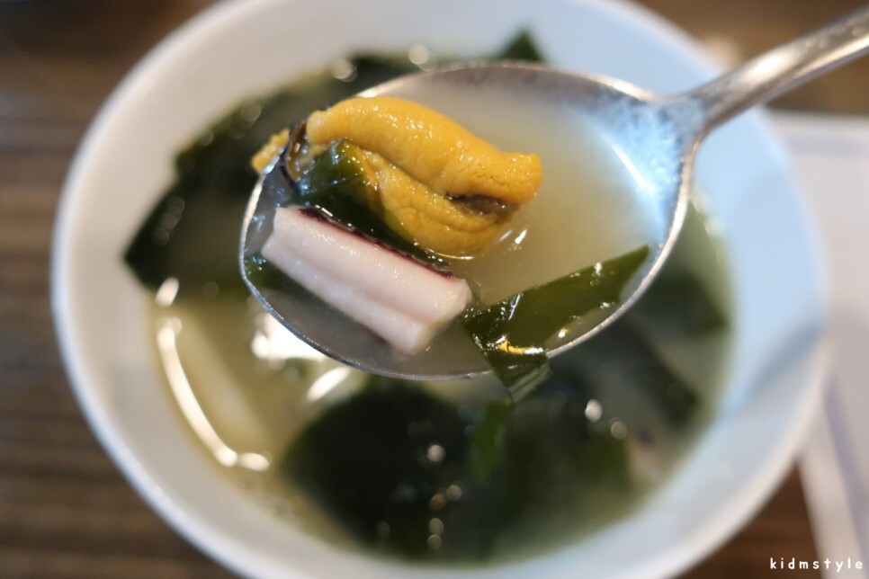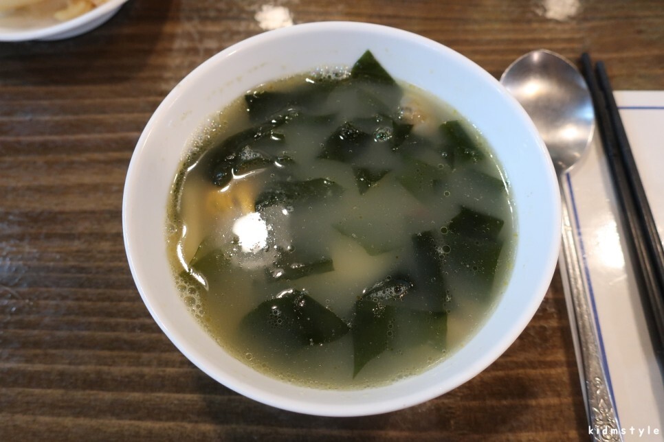 먼저 미역국이 나오는데 이 미역국이 정말 맛있다. 참 잘 끓인 미역국이다.