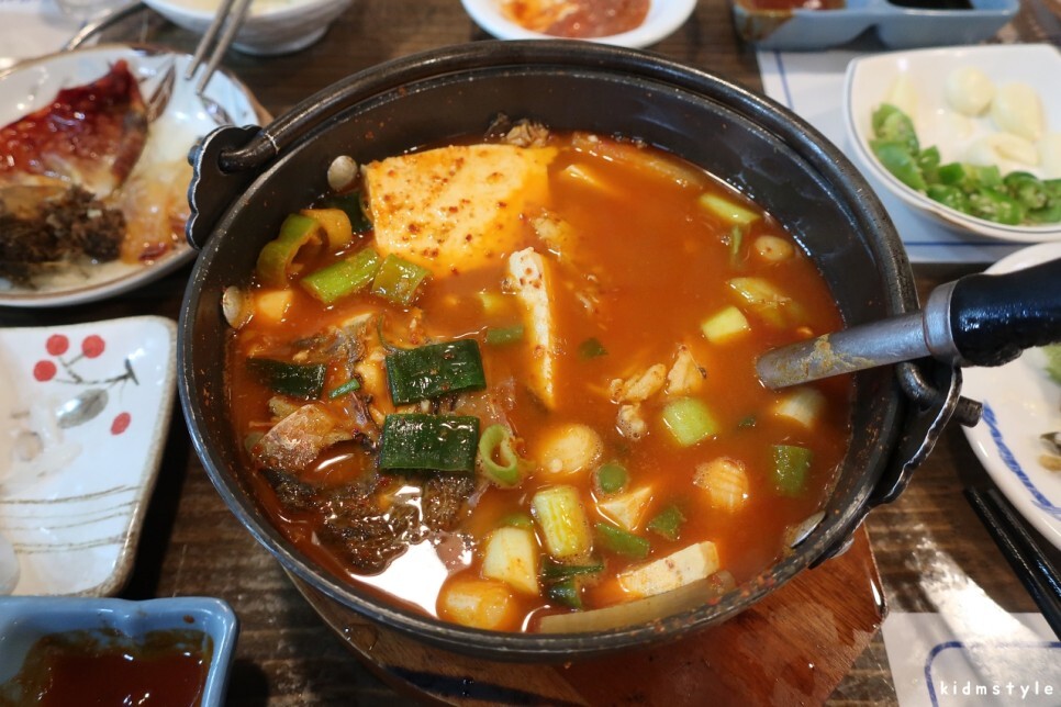 오징어회를 주문하면 원래 매운탕이 안 나오는데 이모님이 따로 챙겨주신 매운탕이다. 이집 매운탕 시원하다. 매운탕이 나왔으니 또 소주 한 잔.