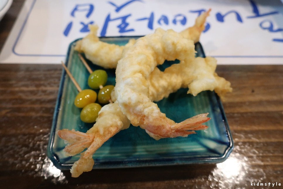 맛만 보라고 건네주신 새우튀김이다. 갓 튀긴 새우튀김이라 정말 맛이 있다. 은행도 별미.