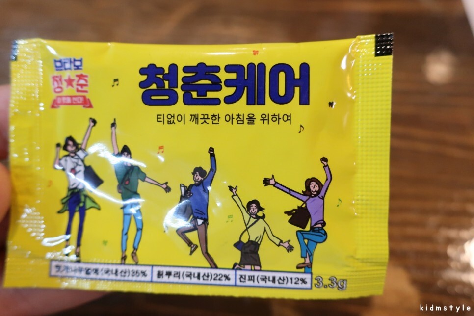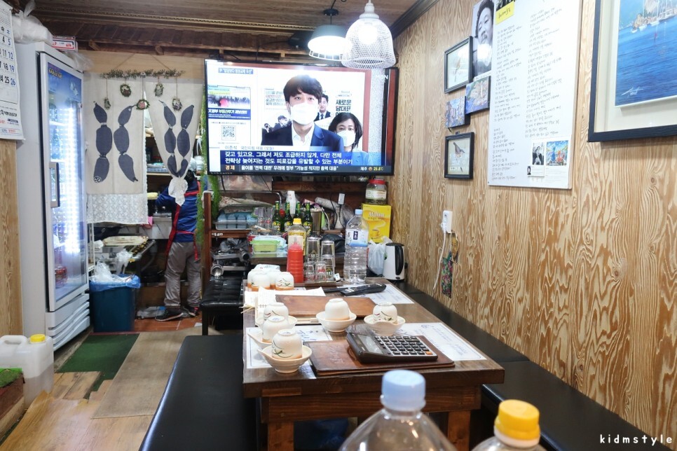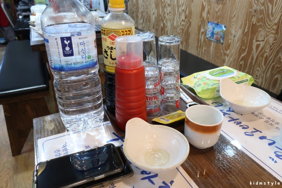 자리를 잡고 앉아서 산 오징어 주문을 하고 테이블에 놓여있던 숙취해소제를 하나 먹어본다. 주요 재료가 헛개나무 열매, 칡뿌리, 진피 등 말그대로 몸에 좋은 것들이다.