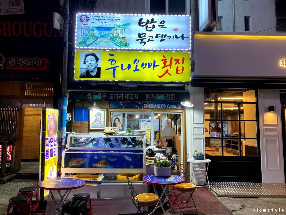 산 오징어 제철이다. 맛을 안 볼 수가 없다. 가까운 남포동에서 산 오징어를 취급하는 곳을 찾아보았다. 몇 군데가 있는데 이전에 방문해서 참 만족을 했던 후니오빠횟집으로 가보기로 한다.