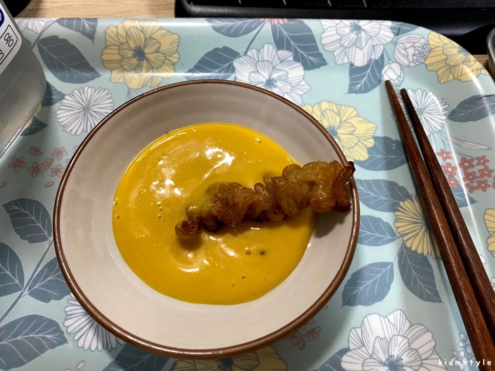 꼬치를 소스 위에 떨구고 푹 찍어서 먹으니 꿀맛이다.