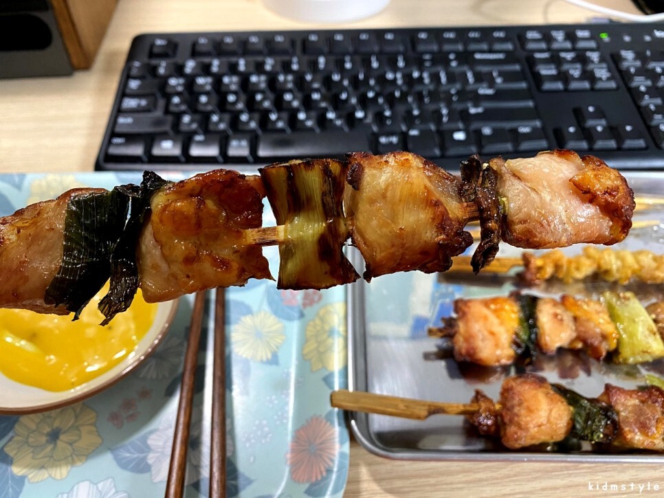 이번에는 닭꼬치이다. 약간 오버쿡되었는데 여전히 맛있다.