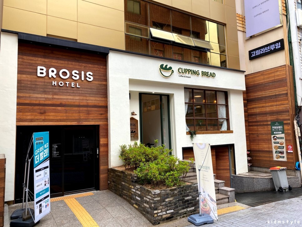 남포동 구덕로 대로변에서 가깝다. 깔끔한 건물의 외관이 이쁘다. 들어가기 전부터 아주 인스타 감성이 팍팍 연출되는 느낌이다. 이 건물이 참 장사가 안되고 공실이 많았는데 이번에 리모델링을 하고나서 호텔도 들어오고 1층에는 커피숍, 2층에는 부산에서 유명한 맥줏집 고릴라 브루잉이 들어와있다.
