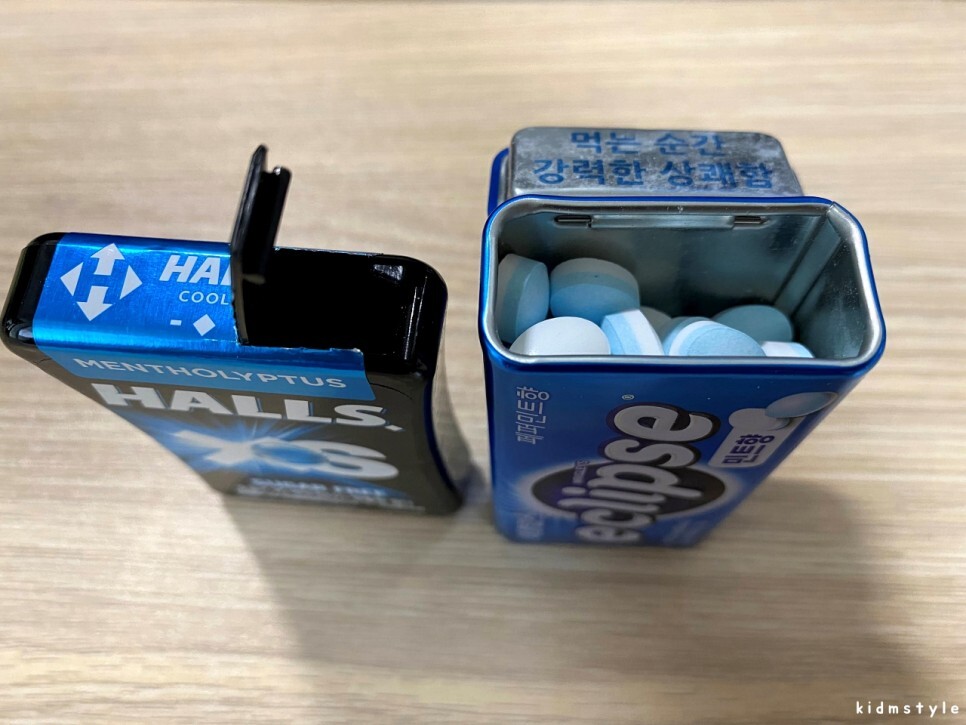 맛에 대해서 이야기를 간단히 해보면 호올스 XS는 먹고 나면 그 화한 맛에 눈물이 날 때도 있다. 잠 깨기 딱 좋은 캔디이다. 그리고 이클립스는 그런 화한 맛은 조금 부족하지만 그래도 무난하게 먹기 좋다.