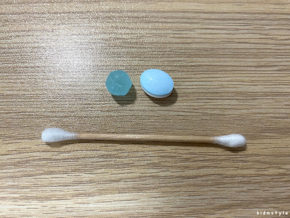 알맹이를 하나씩 꺼내서 면봉과 크기를 비교해보았다. 한 번에 2알씩 먹으면 딱 좋다.
