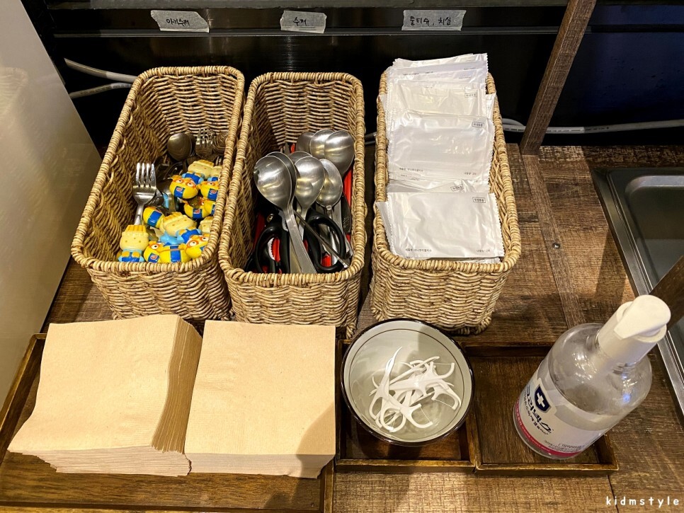 아이를 위한 수저와 치실 등 센스가 돋보인다.