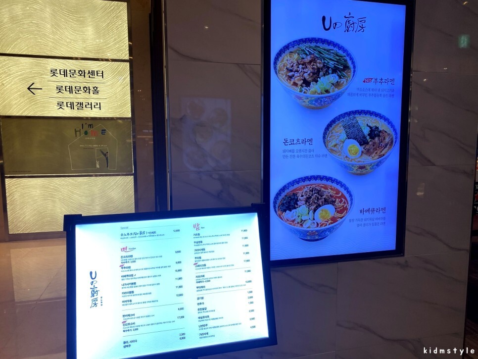 롯데백화점 광복점 10층 식당가에 라멘집이 생겼다는 이야기를 듣고 한번 가보았다. 유노추보라는 곳인데 강남 가로수길에서 인기 있는 곳이고 체인은 부산에 2곳, 용인에 1곳이 있다.