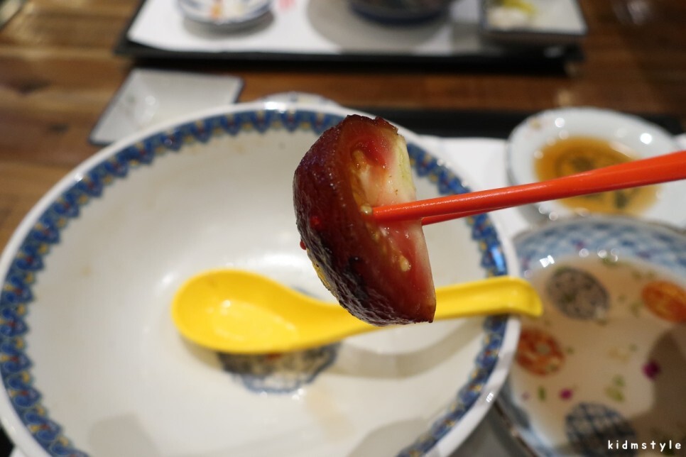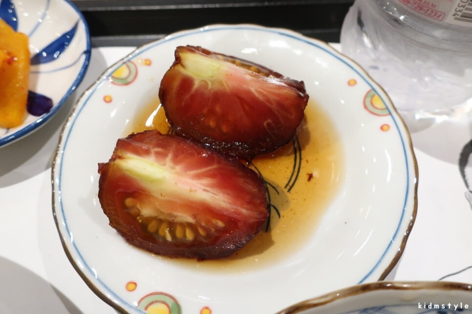 매실 토마토이다. 매실액에 숙성시킨 새콤달콤한 토마토인데 식후 디저트로 맛보도록 하자.