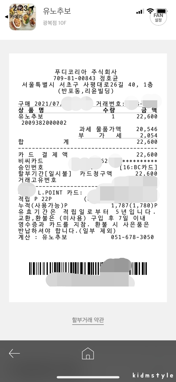 부산광역시 중구 중앙대로 2 롯데백화점 10층 유노추보