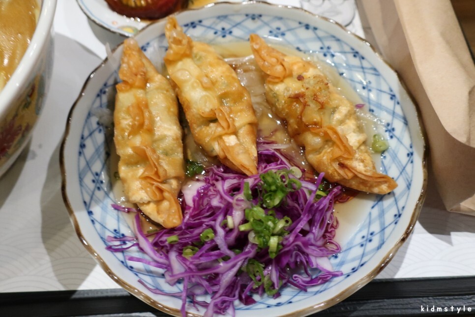 다시 내가 주문한 음식으로 돌아와서 살펴보자. 먼저 난반만주이다. 뜨거운 왕교자 위에 새콤달콤한 삼바이스 소스와 양파를 올린 요리이다. 먹어보니 맛이 괜찮다.